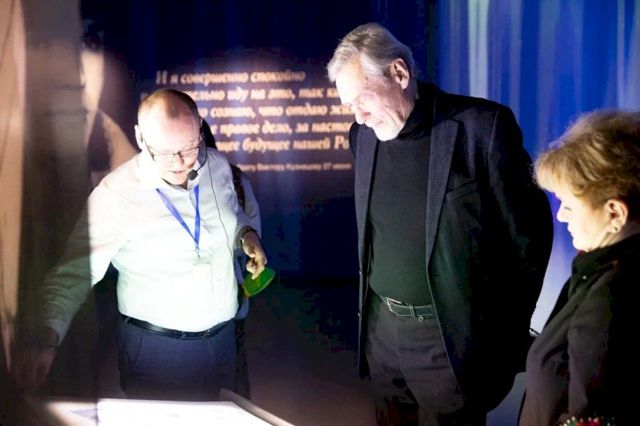 Александр Михайлов намеревался приехать еще на открытие выставки о Николае Кузнецове, но увидел исторический проект Фонда святой Екатерины только сейчас, спустя два года. Сопровождала его министр культуры Свердловской области Светлана Учайкина.