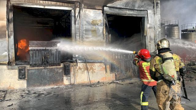 Пожарным удалось предотвратить распространение огня на склад с легковоспламеняющимися веществами. Из-за высоких температур на месте пожара обрушилась стена на площади 100 кв. м. Внутри здания происходят хлопки емкостей с воспламеняющимися жидкостями. Для разведки обстановки работают беспилотники.