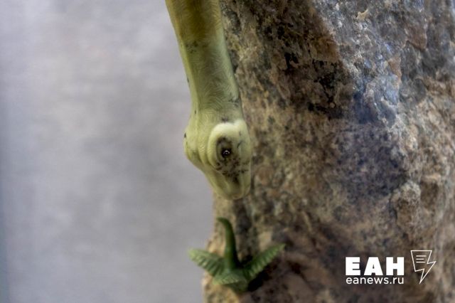 Студентка Уральского государственного горного университета Анастасия Луппова принимает участие в конкурсе впервые. Ее работа, выполненная яшмы, гранита и офиокальцита, носит название «Последний динозавр». «Мне в целом нравится эта тема. Правда, может показаться, что у меня немного мрачная работа. Мой динозавр – последний, он тянется к кустику, как к последней надежде, но ему не суждено до него дотянуться», - объясняет Анастасия свою идею.