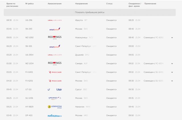 В Кольцово произошла массовая задержка рейсов. Это касается как прилетающих лайнеров, так и вылетающих.