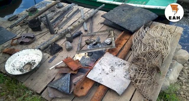 Игорь рассказал ЕАН, как проходит процесс уборки. В его распоряжении резиновая лодка, непромокаемый костюм, металлоискатель и несколько инструментов, которыми он может достать со дна крупные вещи.