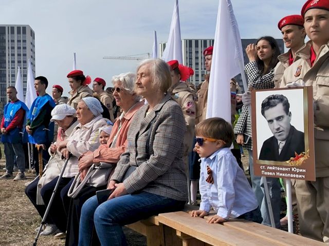 Несмотря на отмену по всей стране акции «Бессмертный полк», многие жители Академического принесли с собой портреты родственников, участвовавших в Великой Отечественной войне. В конце мероприятия воспитанники одного из местных детских садов выпустили белых голубей – символ мирного неба над головой.
