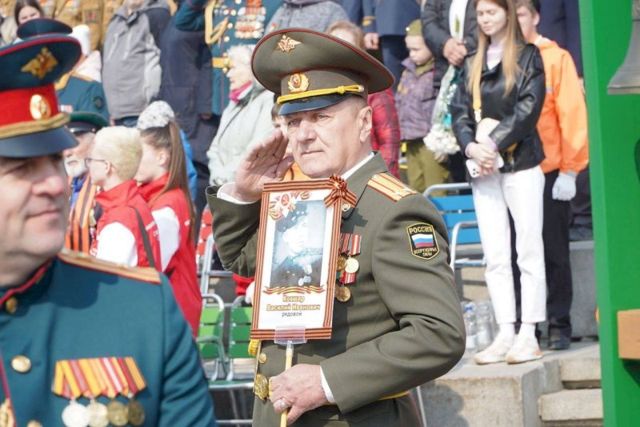 После прохождения техники военный оркестр провел показательное выступление и на этом торжественная часть закончилась. От шествия «Бессмертного полка» в Екатеринбурге, как и по всей стране, отказались (прежде акцию отменяли в 2020-2021 гг. из-за пандемии). Впрочем, некоторые зрители принесли с собой на трибуны плакаты с фотографиями родственников-фронтовиков.