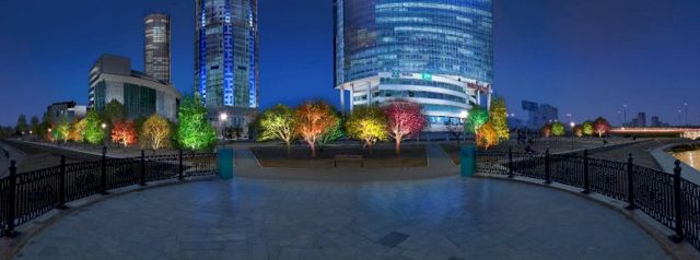 На этом работы не заканчиваются. Совсем скоро новая цветная подсветка деревьев появится вдоль набережной от бизнес-центра «Президент» до Театра драмы. Также в ближайшие дни стартуют монтажные работы по освещению фасада делового дома "Демидов". Для реализации этого проекта будут использованы энергосберегающие лампы, способные менять яркость свечения и цвет.