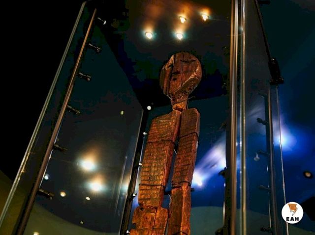 Специалисты уже отметили, что фигура напоминает древнейшей в мире памятник деревянного зодчества эпохи мезолита, Шигирский идол, найденный в болотах на территории нынешней Свердловской области. Его высота, как известно, составляет 5 м, возраст - порядка 12 тыс. лет.