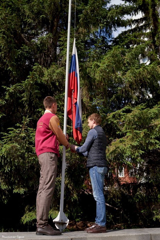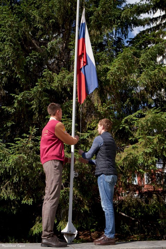 «Для меня честь быть первым студентом, кто поднимает флаг, потому что именно за нашу Родину мы ведем борьбу сейчас на фронте – в зоне специальной военной операции», — заявил Тимофей Жуков.