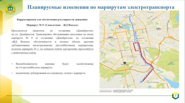Маршрут № 9 «Самолетная – Ж/д вокзал» будет укорочен до остановки «Декабристов»;