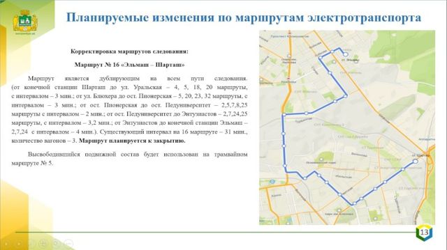 Маршрут № 16 «Эльмаш – Шарташ» будет отменен;