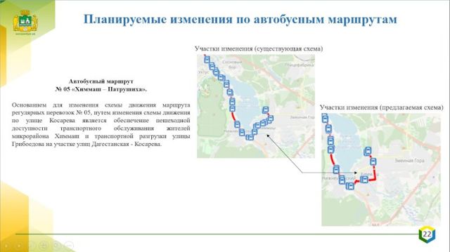 Маршрут № 05 «Химмаш – Патрушиха» изменится в районе улицы Косарева;