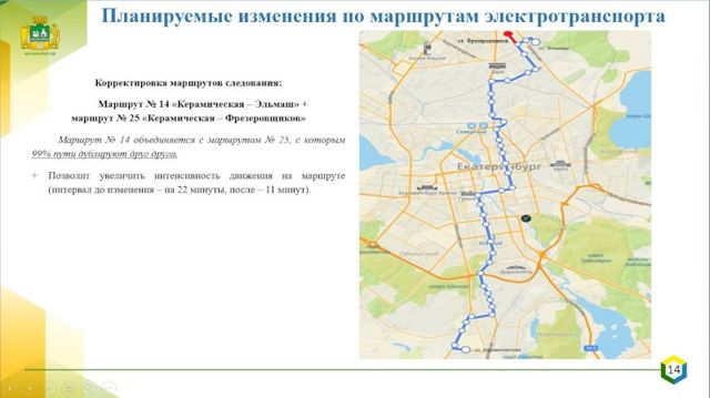 Маршрут № 14 объединяется с маршрутом № 25, с которым 99% пути дублируют друг друга;