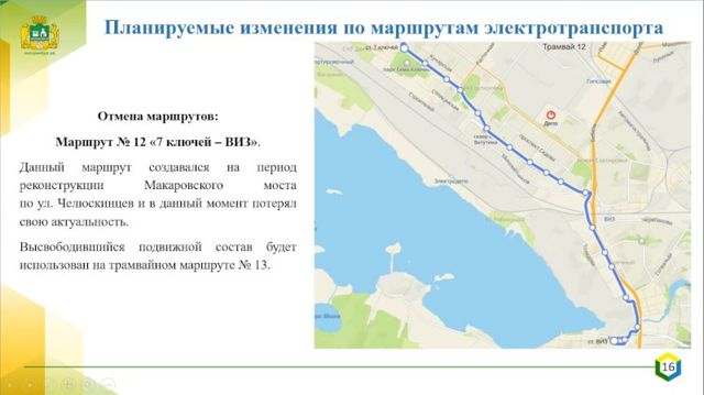 Маршрут № 12 «7 ключей – ВИЗ» будет отменен;