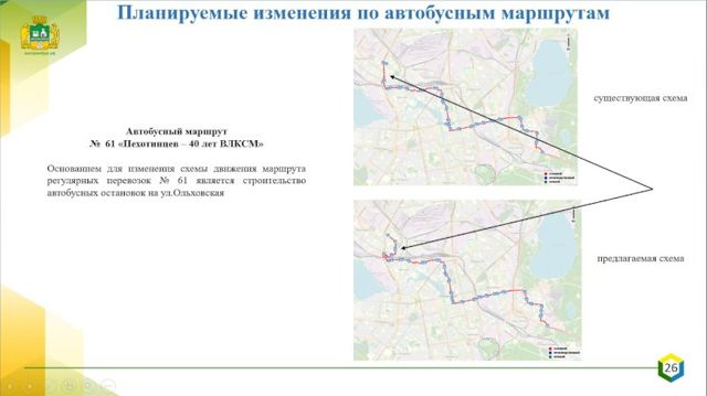 На маршруте № 61 «Пехотинцев – 40 лет ВЛКСМ» появятся новые остановки на улице Ольховской;