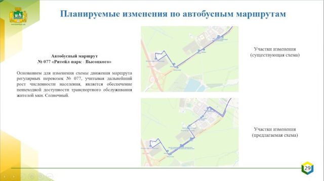 На маршруте появятся новые остановки № 077 «Ритейл-парк - Высоцкого» в Солнечном микрорайоне.