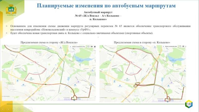Маршрут № 65 «Ж/д Вокзал – а/э Кольцово – п. Кольцово» будет изменен, автобусы начнут заезжать в Новокольцовский микрорайон;