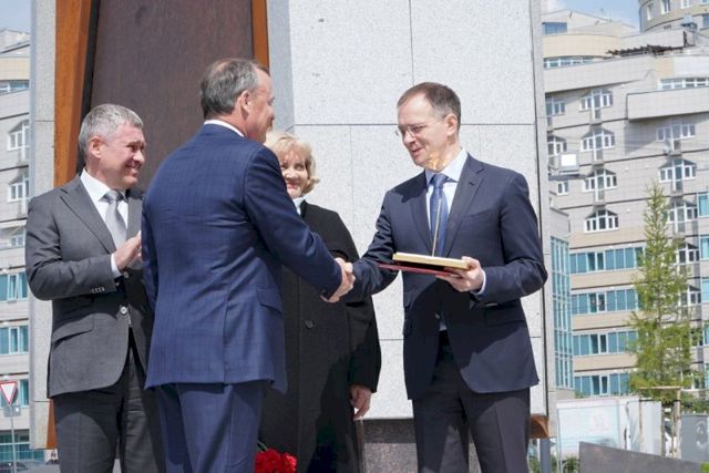 В Екатеринбурге торжественно открыли стелу «Город трудовой доблести». На церемонию прилетел помощник президента России Владимир Мединский. Он зачитал поздравительную телеграмму главы государства Владимира Путина, адресованную Екатеринбургу.