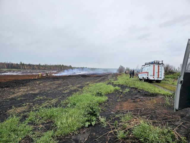 Сейчас продолжают тлеть поля в районе поселков Красноармейский и Озерный. По сообщению волонтеров, традиционных средств тушения такого пожара недостаточно.