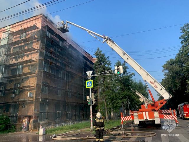 В Екатеринбурге ранним утром 5 июля произошел пожар в доме по улице Гагарина, 12. У здания, где, судя по строительным лесам, проходил капремонт, загорелась крыша.
