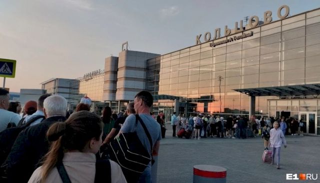 Сегодня утром на входе в аэровокзал «Кольцово» в Екатеринбурге образовалась огромная очередь. На фото, которыми поделилась читательница Е1.RU, видны несколько десятков стоящих на улице человек. Людей у входа в аэровокзал оказалось настолько много, что они не помещались на прилегающей к зданию площадке.