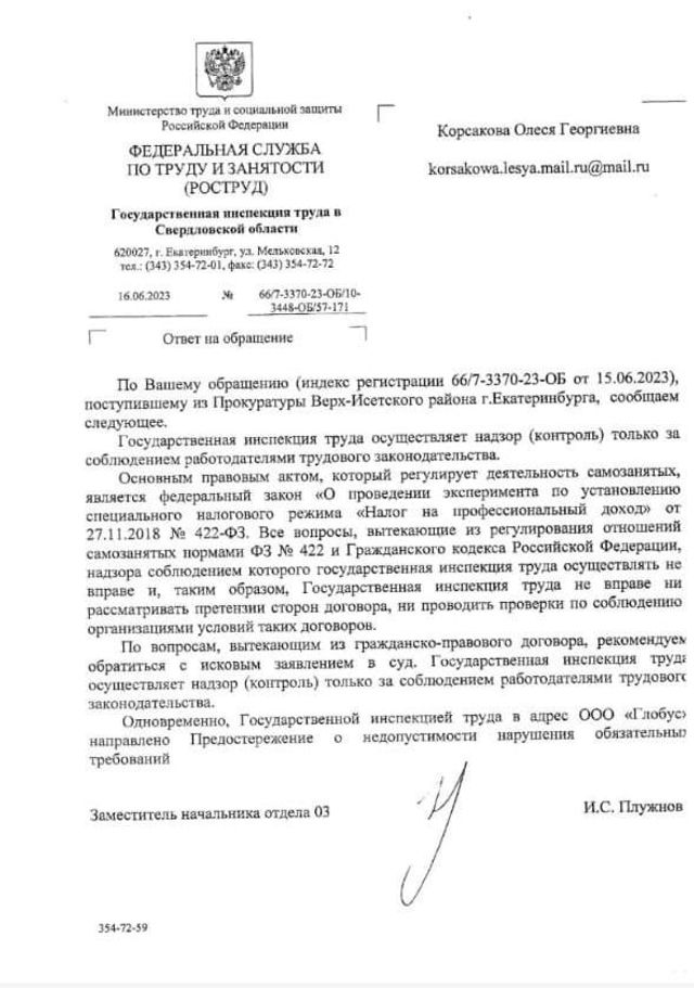 В министерстве уточнили, что на «Глобус» Новожилов физически не мог получать деньги, потому что не сдавал отчетность.