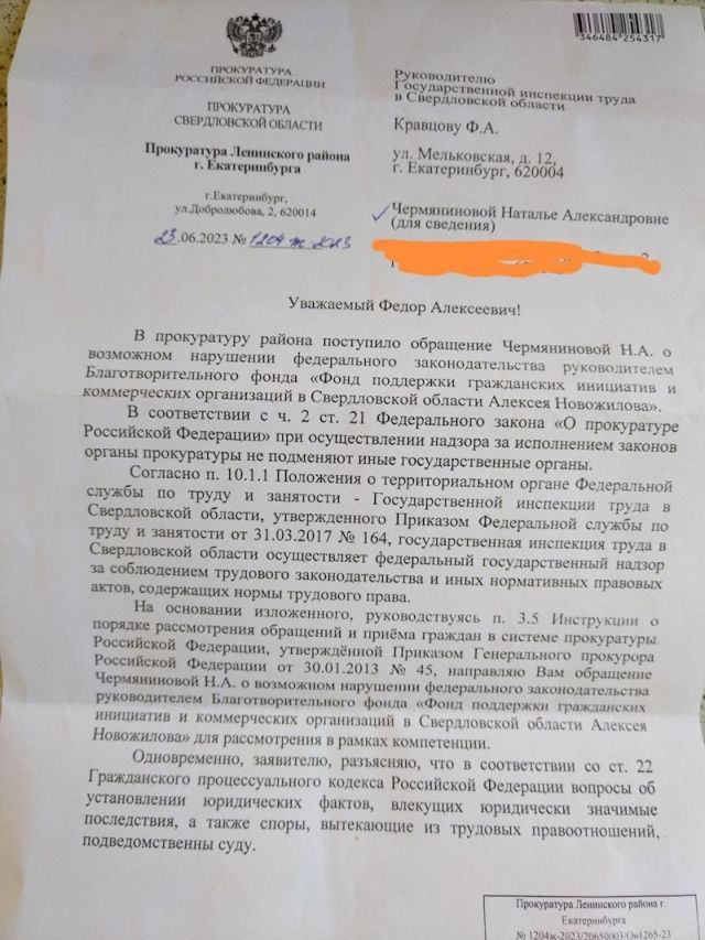 В прокуратуру и СК Свердловской области написали жалобы бывшие сотрудники АНО «Уральский центр развития гражданских инициатив и социального партнерства», который относится к благотворительному фонду Алексея Новожилова. Всего, по их словам, набралось 120 пострадавших. Сотрудникам уже полгода не выплачивают зарплату. Подробности этой истории ЕАН рассказала Наталья Чермянинова, которая работала специалистом по социальной работе.