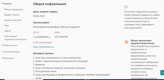 Еще в июле 2019 года Ленинский районный суд Екатеринбурга, рассмотрев дело по административному исковому заявлению от Минюста по Свердловской области к благотворительному фонду «Детское сердечко», постановил ликвидировать организацию и исключить из Единого государственного реестра юридических лиц.