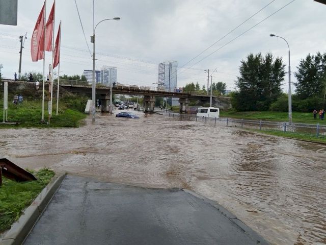 По данным корреспондента ЕАН, водой полностью залит проезд под железнодорожным мостом в самом начале улицы Щербакова. Воду с проезжей части пытаются разогнать трактором. В воде утонула машина, общественный транспорт вынужден разворачиваться. Жители Уктуса и Химмаша не могут попасть на работу в другие районы города.
