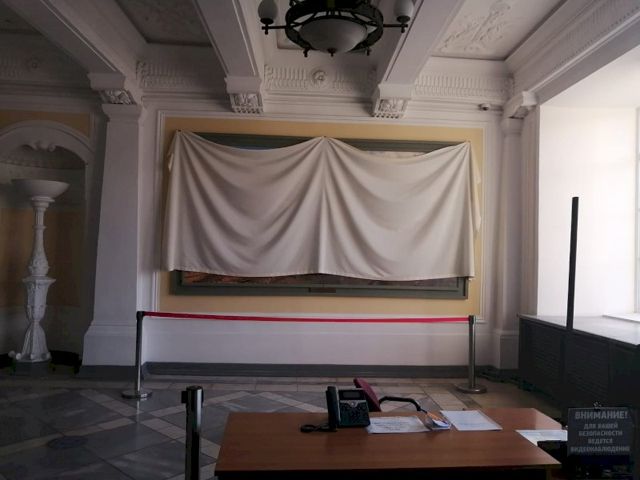 Отметим, на месте картины был указатель с номерами этажей и кабинетов. Теперь он будет заменен на информационный киоск.