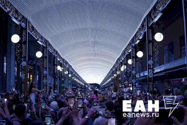 Этот объект стал подарком для города от «Сима-ленда». Конструкция протянута над всей пешеходной частью улицы — от проспекта Ленина до улицы Малышева. Отсюда и ее название — «небесный экран».