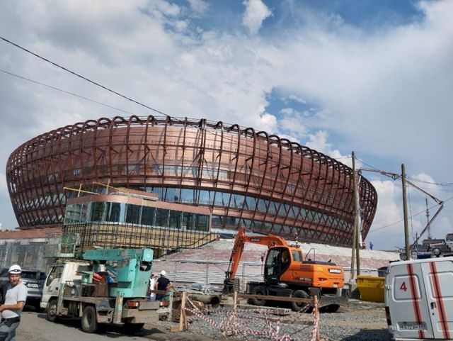 На строящейся ледовой арене в центре Екатеринбурга сегодня произошел пожар. Горожане заметили дым, исходящий из здания.