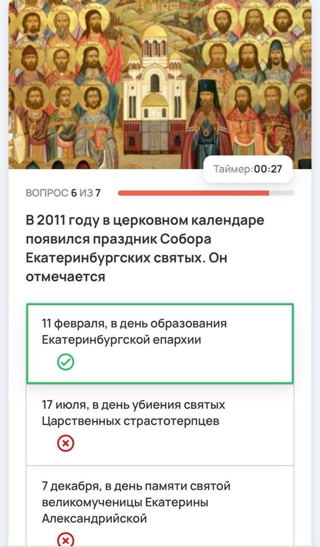 Всего 15% из почти 400 участников правильно ответили на все семь вопросов викторины о православном Екатеринбурге, которую проводила местная епархия.