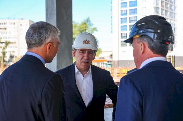 Свердловский губернатор Евгений Куйвашев и мэр Екатеринбурга Алексей Орлов оценили темпы строительства школы в микрорайоне Уктус. По плану работы здесь будут завершены в 2024 году.