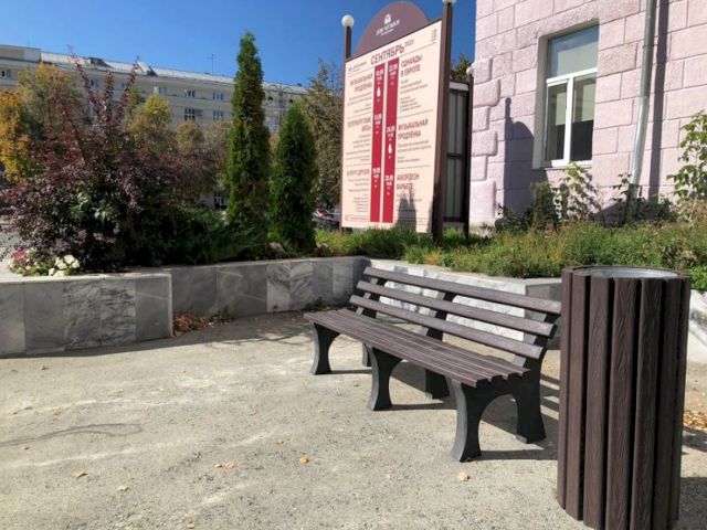 По инициативе администрации Железнодорожного района в Екатеринбурге установили антивандальную уличную мебель, изготовленную с использованием переработанного пластика. Тринадцать скамеек и 36 урн разместили на территории сквера на пересечении улиц Еремина и Мельковской, у Дома музыки, вдоль улицы Свердлова и возле здания железнодорожного дорожно-эксплуатационного управления.