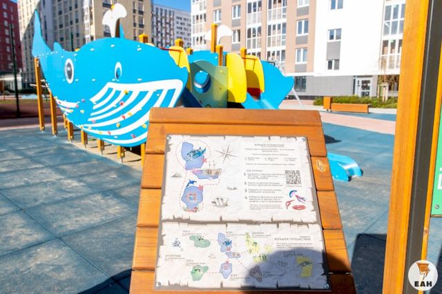 В каждом дворе квартала Eleven есть таблички с куар-кодами, с помощью которых можно скачать приложение AR-travel и отправиться в «Большое путешествие». Как рассказывает разработчик игры Евгений Кришталь, исследовать мир природы дети 9 - 14 лет вполне смогут самостоятельно, а ребятам помладше в этом помогут родители.