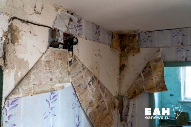 По словам Натальи, в 2021 году они обратились в администрацию, чтобы им починили крышу, так как в ней зияли дыры. Крыша наполовину обвалилась, соседи со второго этажа вынуждены подпирать потолок бревном, чтобы он не рухнул. Приехавшая комиссия установила, что дом аварийный, и в ремонте крыши отказала.