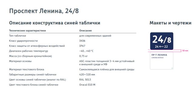 Напомним, внешний вид табличек разрабатывали дизайнеры, в том числе руководитель и куратор команды «Дизайн-код Екатеринбурга» Павел Омелехин и сооснователь команды «Дизайн-код Екатеринбурга», председатель свердловского отделения «Союза дизайнеров России» Сергей Шашмурин. На фасадах зданий, построенных с 1955 года, рекомендовано устанавливать бело-синие большие, малые, компактные таблички с названием улиц на русском и английском языках, с номером дома. Для зданий, построенных до 1955 года, и объектов культурного наследия специалисты разработали два варианта указателей прямоугольной и квадратной форм в черном цвете.
