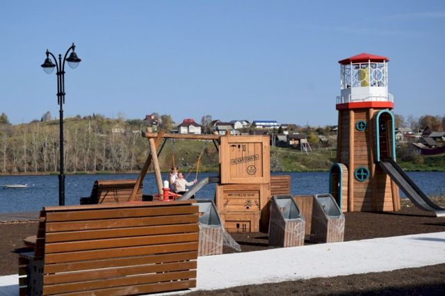Новая невьянская набережная получила название «Калейдоскоп времен». На территории 1,3 га разбиты шесть зон, каждая из которых символизирует эпоху в истории Урала – от времен Демидовых до современности.