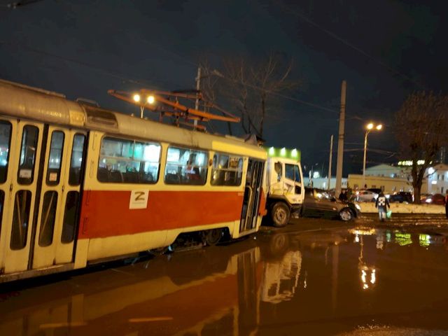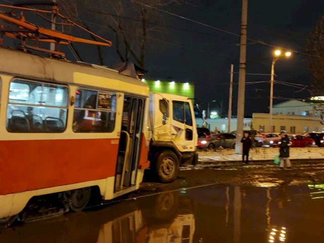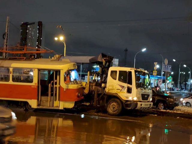 В Екатеринбурге на проспекте Космонавтов трамвай столкнулся с КамАЗом. Авария произошла сегодня около 18:40, сообщил ЕАН очевидец.