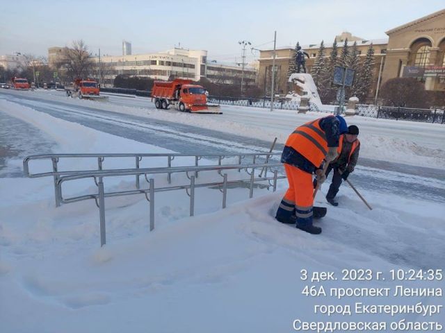 «Обсудили с коллегами меры, предпринятые коммунальщиками для уборки города. Также обозначили планы, как будет выстроена работа на день и ночную смену. В приоритете – расчистка и обработка противогололедными материалами остановок общественного транспорта, пешеходных переходов и тротуаров, перекрестков. Работа ведется круглосуточно и в усиленном режиме. Только за минувшие сутки для уборки снега было задействовано 459 рабочих и 436 единиц спецтехники. Для борьбы с гололедом использовано более 204 тонн ПГМ и 39 тонн песка. Сейчас на улицы выведены 375 рабочих и 178 единиц спецтранспорта» – сообщил мэр Екатеринбурга. Он уточнил, что во внимание были приняты, в том числе, жалобы екатеринбуржцев, присланные в социальных сетях и telegram-канале.