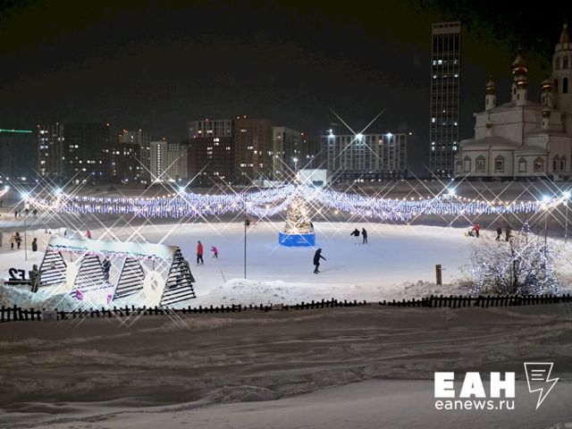 В Академическом районе Екатеринбурга накануне вечером торжественно открыли ледовый городок. В этом году он посвящен теме знаний.