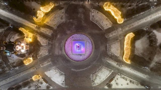 Один из них засиял более чем 50 тыс. светодиодами у часовни святой Екатерины в центре города. Каждые 10 секунд на шаре появляется один из 23 праздничных узоров и поздравление с Новым годом и Рождеством.