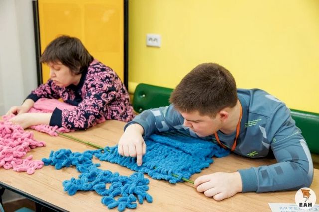 Один из последних проектов «Сейчастья» - мастерская для людей с особенностями развития. В ней под руководством преподавателей ребята занимаются рукоделием: вяжут снуды, делают подушки и другие изделия.
