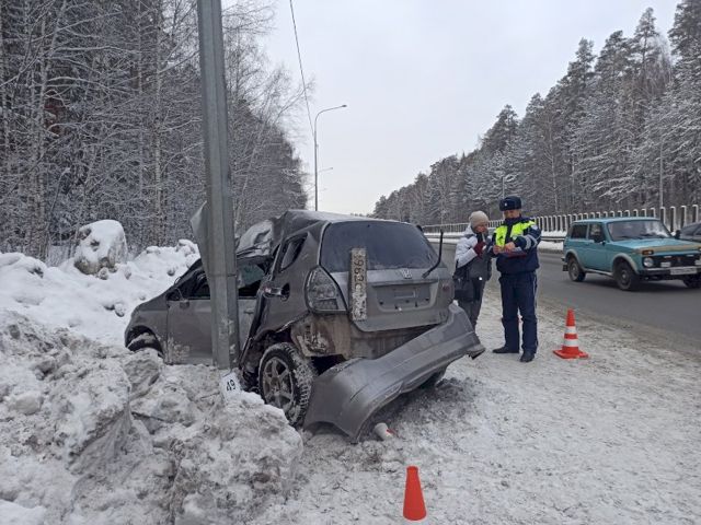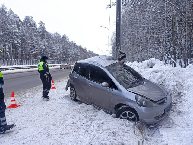 Как сообщает пресс-служба городской ГИБДД, авария произошла накануне, 4 февраля, на 18 км дублера Сибирского тракта. Honda Fit, двигаясь со стороны ЕКАД в сторону поселка Исток, вдруг резко повернула вправо и въехала в столб.