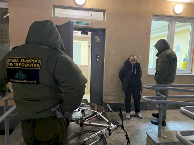 Преступник действительно продолжил поиски желаемого – он направился к соседнему дому № 103 на улице Краснолесья. В холле первого этажа тросом был пристегнут велосипед, мужчина отвязал его и попытался скрыться, но на выходе был задержан сотрудниками группы быстрого реагирования.