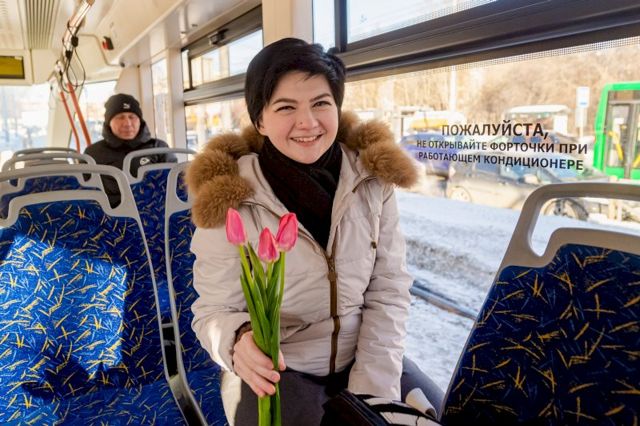 Необычная праздничная акция прошла сегодня в трамваях, курсирующих из Верхней Пышмы в Екатеринбург. Воспитанники Спортивной школы единоборств вместе с тренером Иваном Пантюхиным и координатором федерального партийного проекта «Zа самбо» в Свердловской области Алексеем Сваловым вручили каждой девушке по букету тюльпанов.