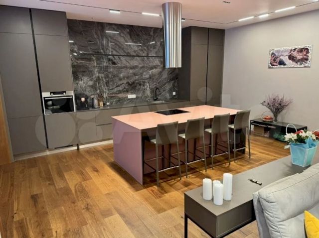 Квартира оборудована системами "умный дои" и "климат контроль". Внутри - дизайнерский ремонт, отдельная гардеробная и кухня 55 квадратных метров. Продавец утверждает, что комнаты обставлены итальянской мебелью, а полы укрыты коврами из Бельгии. К квартире присоединена лоджия площадью 40 "квадратов".
