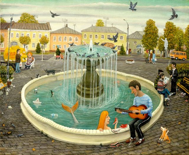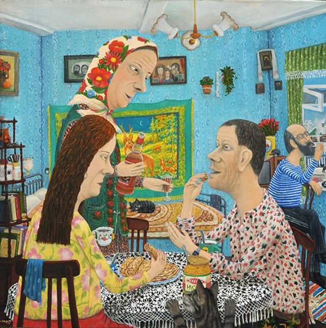 «По формальным признакам Юрия Шерова нельзя назвать наивным художником, ведь за его плечами – художественное образование, изостудия, длительный опыт интерьерных росписей и годы поиска собственного стиля. Автор близок наиву по духу – сюжетами, взглядом на мир, настроением и любовью к жизни во всех ее проявлениях», - рассказали в музее.