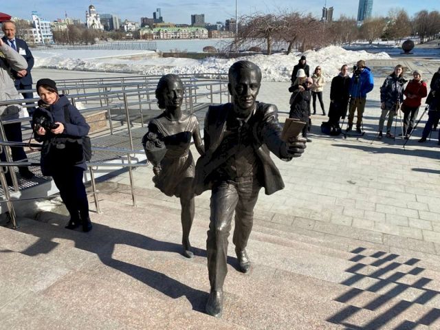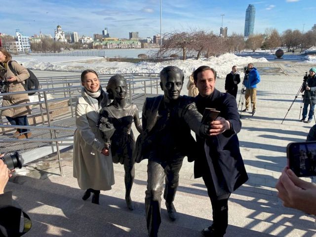 В Екатеринбурге сегодня торжественно открыли новую скульптуру «Спешащие на спектакль», установленную на набережной Исети, возле Свердловского областного театра драмы. В церемонии приняли участие министр культуры Свердловской области Светлана Учайкина и автор проекта, лауреат национальной премии «Золотая маска» Владимир Кравцев.