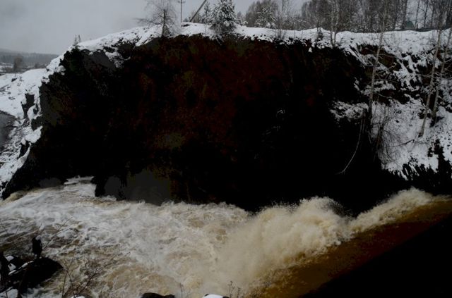 Заключительной точкой нашего маршрута стал водопад – это искусственный слив плотины пруда, образованного на реке Межевая Утка. Водопад является одной из самых главных достопримечательностей поселка Висимо-Уткинска. Вода падает примерно с 5 м и попадает на огромные камни, образуя живописный утес. Выглядит это место очень эффектно в любую погоду, поэтому здесь всегда можно сделать красивые фотографии.