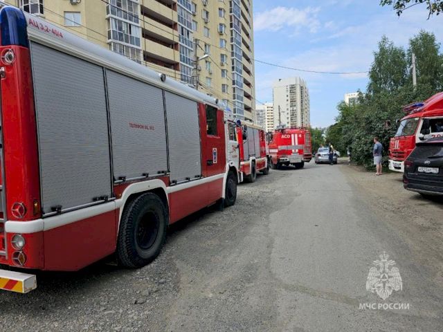 Высотный дом горит на Уктусе в Екатеринбурге 2 июля 2024 в 12:00