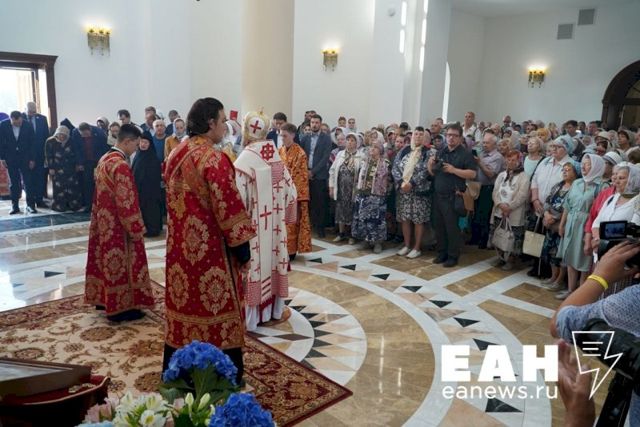 После этого в новоосвященном храме прошла первая в его истории литургия, по окончании которой митрополит Евгений обратился со словами благодарности к учредителям Фонда святой Екатерины. Глава Екатеринбургской митрополии напомнил в присутствии нескольких сотен людей, что «святая Екатерина через своих помощников» оказала немалую помощь в поддержании работы больниц и хосписов. Но кроме того, благодаря меценатам, в области продолжается возрождение духовной жизни.